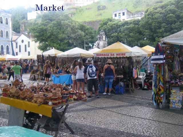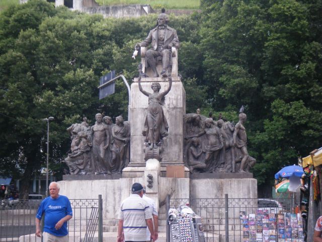 It was an overcast day as we docked at Salvador de Bahia, Brazil. Salvador was one of the original Portuguese settlements in Brazil, having been founded in 1549 and was Brazil's capitol until 1763. The residents are classed as Afro-Brazilian as the city was the hub of the African slave trade until slavery was banned in 1888. African culture, food, dance and religion still permeate the city. The city is on 2 levels with the upper level being a UNESCO Heritage site. We walked from the port to the Mercado Modelo at the harbor area. The Mercado building was originally the slave market and now houses numerous craft stalls and restaurants. Across the street from the back of the market is the Elevador Lacerda, a236 vertical elevator tower between harbor level and the upper town where the UNESCO area is. It costs all of 7 cents to ride the elevator and we took it to the upper town and strolled around. We have visited here several times in the past and are familiar with the layout. There are numerous churches and other buildings dating from the 1500s through 1800s. Unfortunately our stay was short, 7:00am to 12:30pm so we didn't get to have lunch at our favorite restaurant, Dada. It started raining around 11:30 so we caught a shuttle back to the ship. The afternoon was filled with lectures and games as we sailed towards Rio with a sea day in between. On the 25th we had the usual lectures & games and also the judging of a boat building contest. Guest teams created boats from items available around the ship and they were very creative. Each boat had to survive floating in the pool for 1 minute and then all boats were put in the pool together as the water was roughened up to test their strength. Only the "Titanic" fell apart and the team's captain jumped in to go down with his ship."